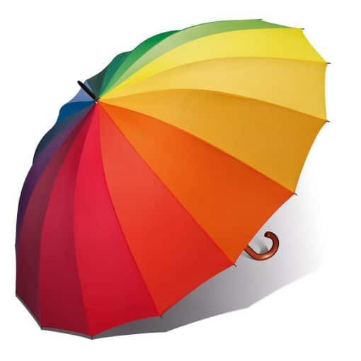 En paraply regnbue er en af de gaver, der fungerer til næsten alle. Til den farveglad veninde, den praktiske far, bedsteforældrene eller teenageren, der skal cykle i skole. Den er enkel, brugbar og ser godt ud – og det er svært at gå galt med regnbuefarver.